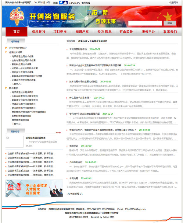 湘潭市開(kāi)創(chuàng)咨詢服務(wù)有限公司網(wǎng)站文章列表頁(yè)效果圖