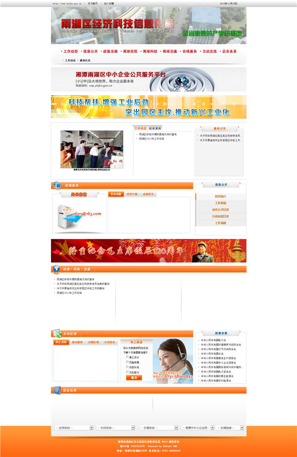 雨湖區(qū)經(jīng)濟(jì)科技信息化局網(wǎng)站首頁效果圖