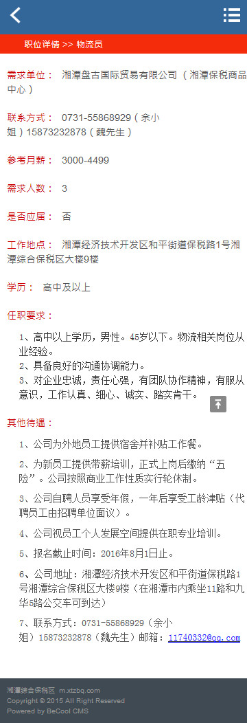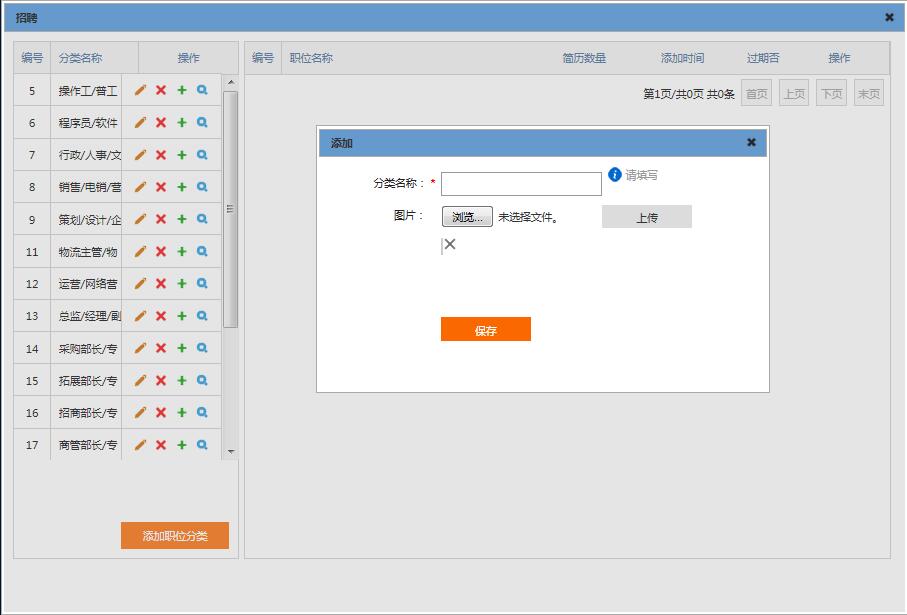 2. 管理員在相關(guān)分類下發(fā)布招聘信息,并提供相關(guān)職位
