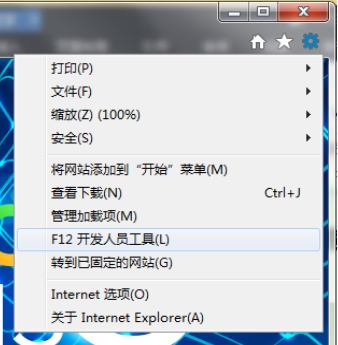 ”,選擇“F12開(kāi)發(fā)人員工具”,或者打開(kāi)IE后直接點(diǎn)擊鍵盤(pán)的“F12”。