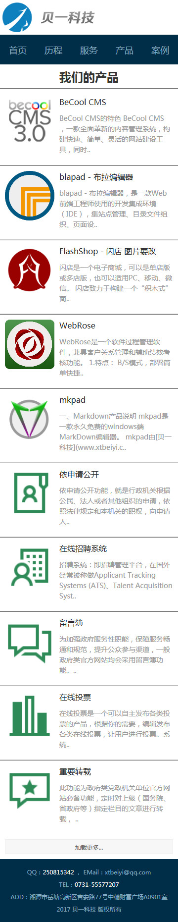 貝一科技微官網(wǎng)產(chǎn)品列表頁(yè)效果圖